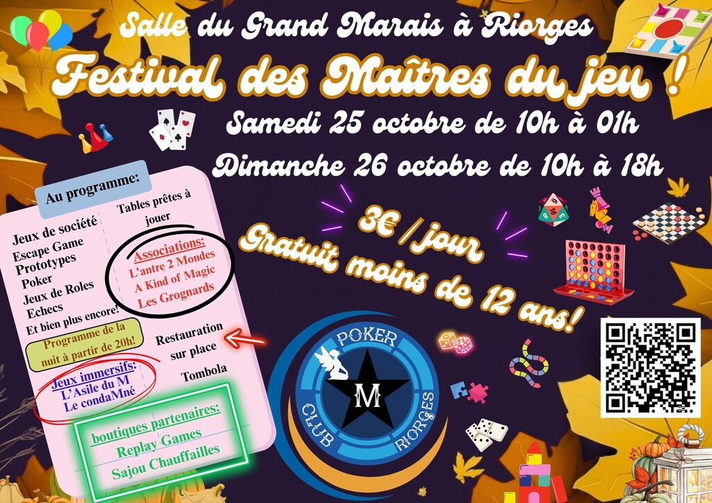 Le Festival des Maître du jeu aura lieu le samedi 25 et dimanche 26 octobre. Au programme, des jeux de société, jeux de rôle, échecs, Escape Game et des jeux immersifs !