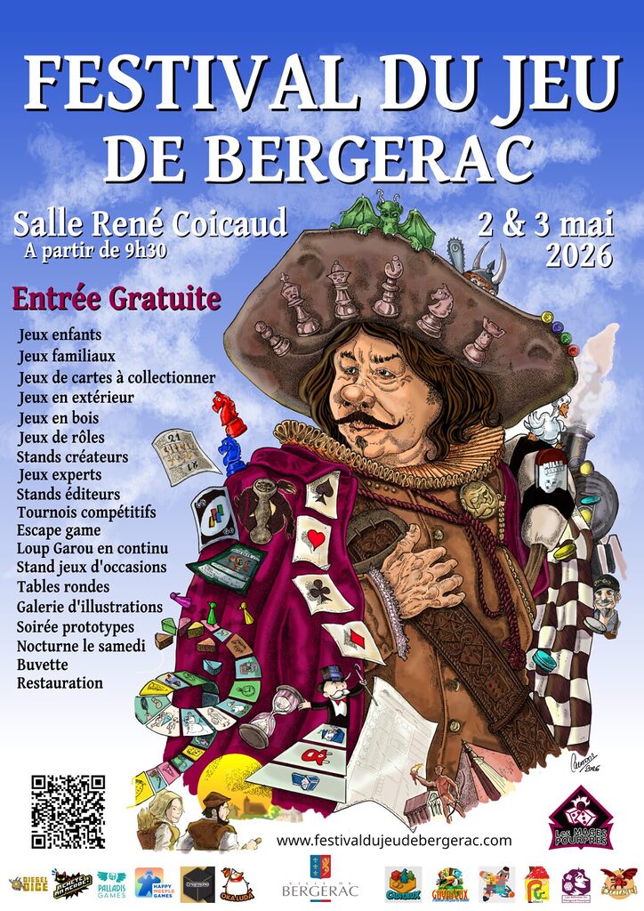 Le festival du jeu de Bergerac revient pour sa quatrième édition le Week-end du 02-03 Mai 2026, toujours dans la salle René Coicaud à Bergerac et avec toujours plus de surprises :
