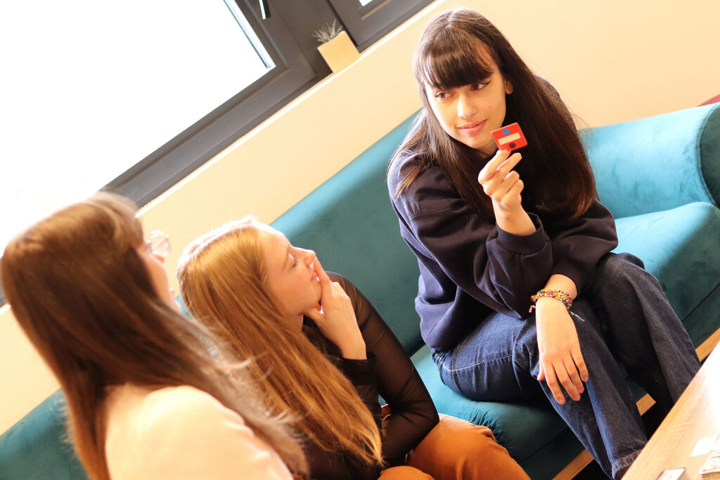 A chaque tour de jeu, piochez une tuile et discutez ensemble de ce qu’elle vous évoque. Ensuite placez la tuile sur le plateau sur une case qui vous semble évocatrice. N »hésitez pas à inventer une petite histoire pour relier la tuile à la cas où vous l’avez placée. Et ensuite… Retournez la tuile !