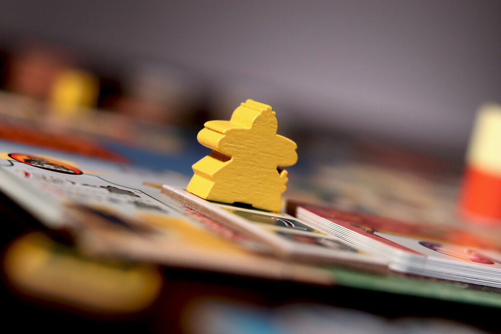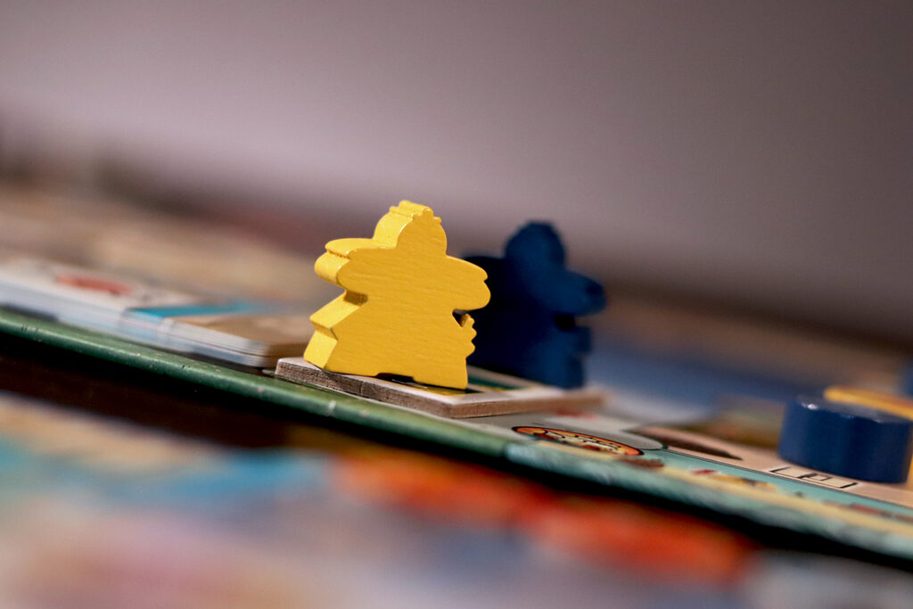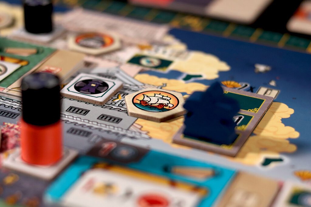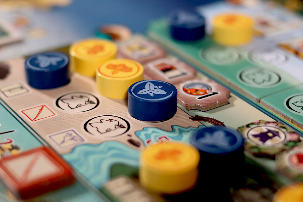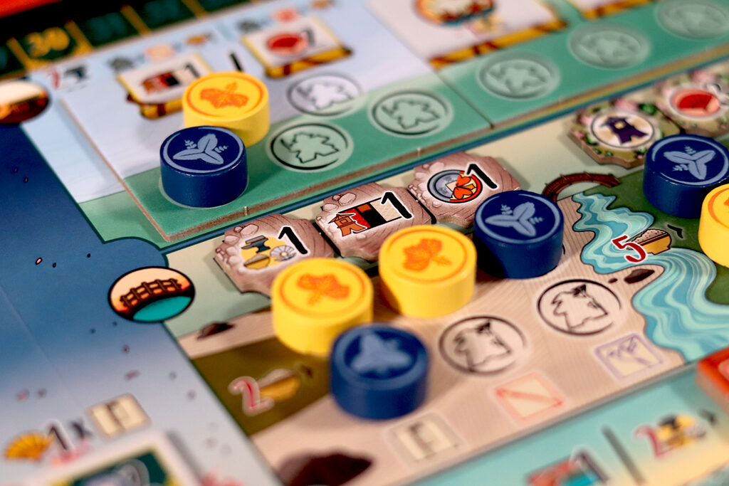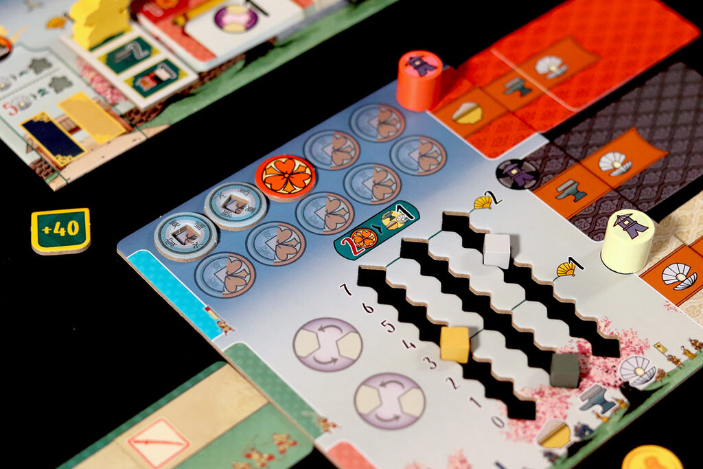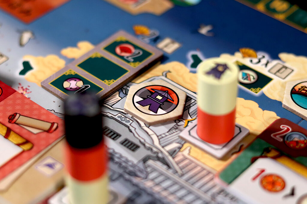 Dans Le Château Blanc – Duel , deux clans s’affrontent pour exercer leur influence à la cour du Héron Blanc, en gérant les ressources et en faisant preuve de stratégie. À chaque tour, vous utiliserez leurs jetons Lampe pour obtenir des ressources et activer des actions. Parmi les actions disponibles, vous pouvez acheter et améliorer des cartes Influence, placer des sceaux de clan sur les jardins et les terrains d’entraînement, déplacer votre courtisan entre les cercles d’influence ou commercer avec les Portugais. Ces actions vous permettront d’accumuler une série d’icônes – drapeaux, katanas, kabutos et origamis – qui vous rapporteront des points. Le vainqueur est celui qui en obtient le plus.