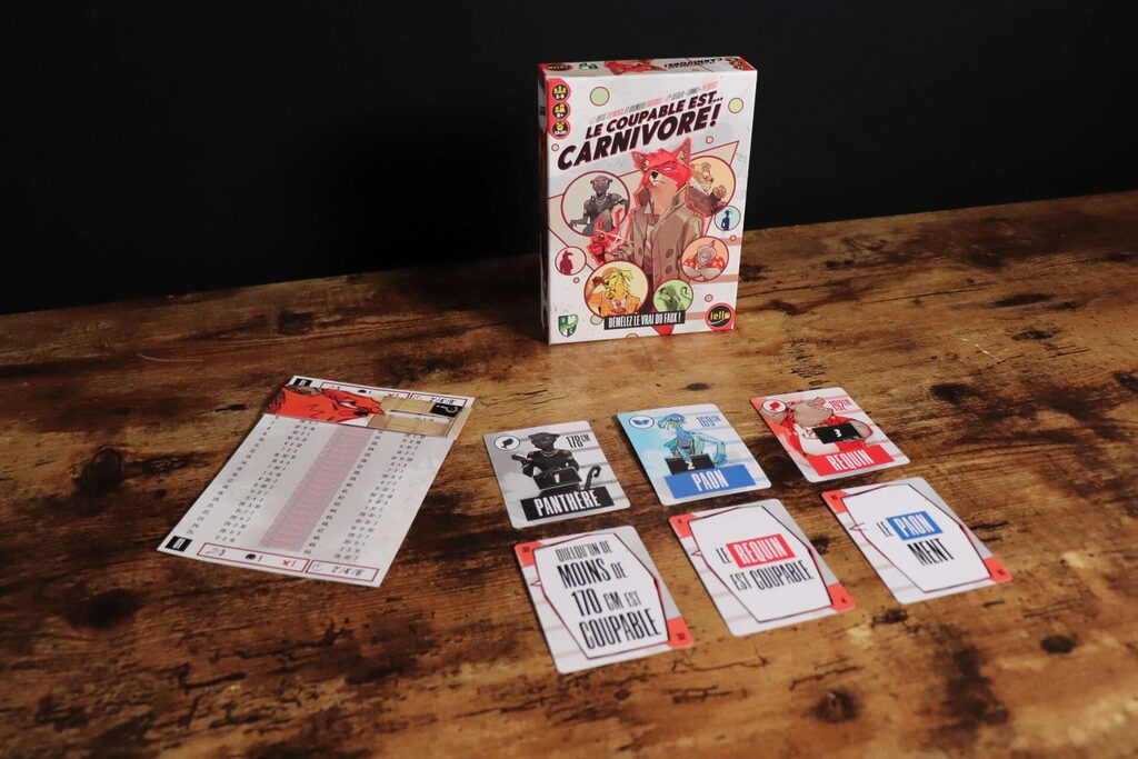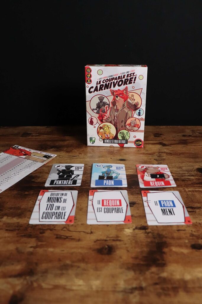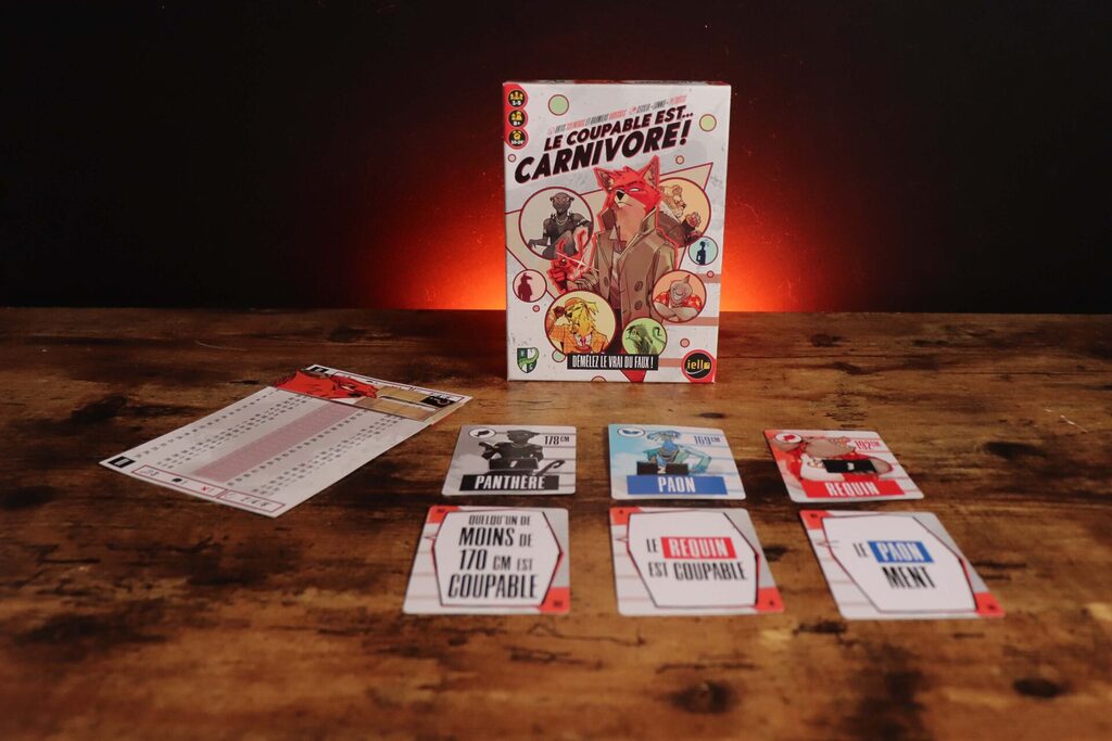 Dans Le Coupable est⊠Carnivore !, vous incarnez des dĂ©tectives chargĂ©s dâanalyser des tĂ©moignages contradictoires pour identifier le ou les coupables. Pas de hasard, pas de bluff : ici, seule votre logique fera la diffĂ©rence.