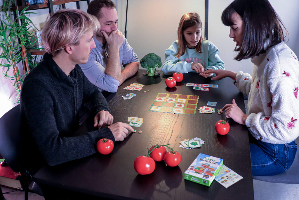 Plante Bataille est un jeu de cartes tactique et amusant pour 3 à 6 joueurs dès 7 ans, dans lequel vous plantez des légumes sur différents champs afin de provoquer des récoltes… et marquer plus de points que vos adversaires.
