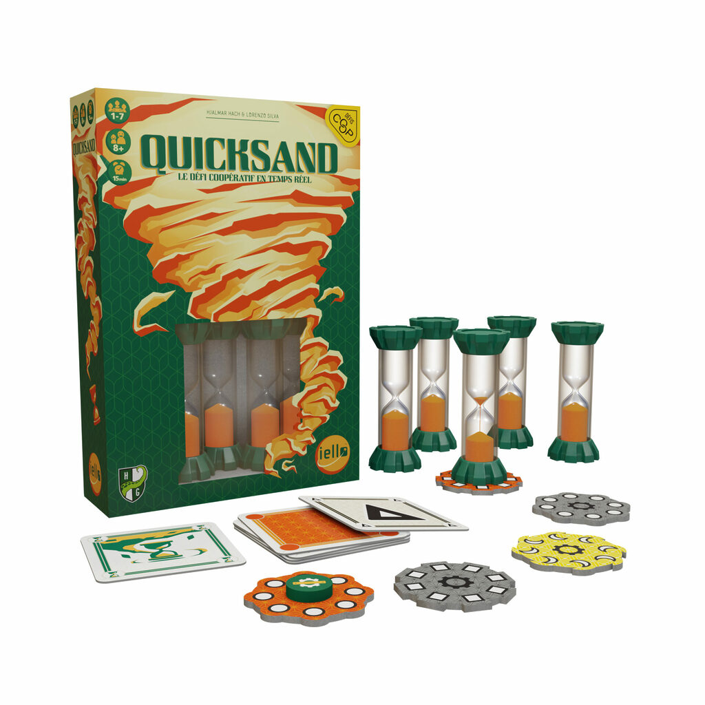 Une fois qu’un chronomètre atteint le dernier espace libre sur le chemin, les cartes jouées correspondant à la couleur/forme de cet équipement le retourneront – et s’il est épuisé, vous perdez la partie sans aucune chance de récupération. Si les sabliers remplissent les dernières tuiles d’équipement du chemin sans que cela ne se produise, vous gagnez !