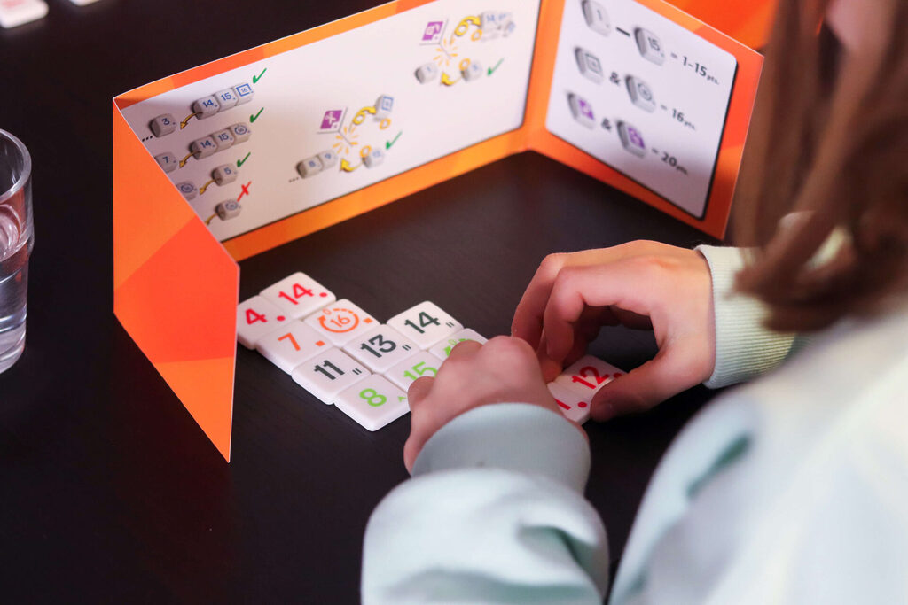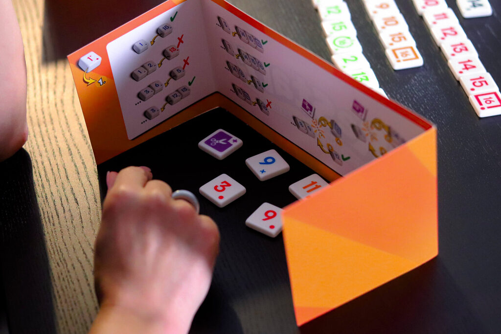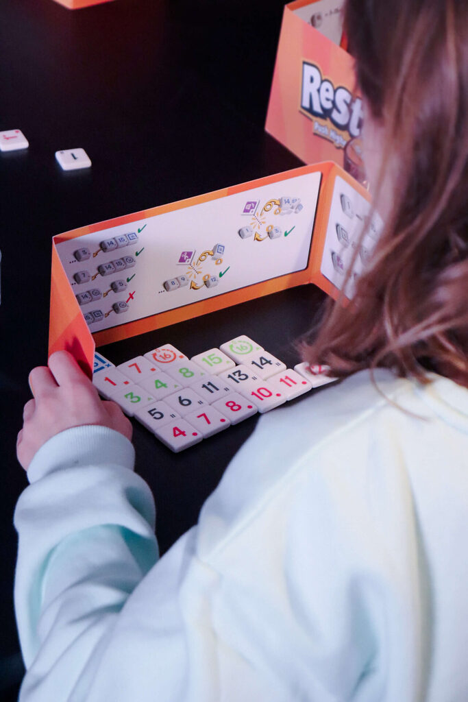 Dans RESTART, chaque joueur dispose d’un ensemble de tuiles numérotées, piochées au hasard et cachées derrière un paravent.