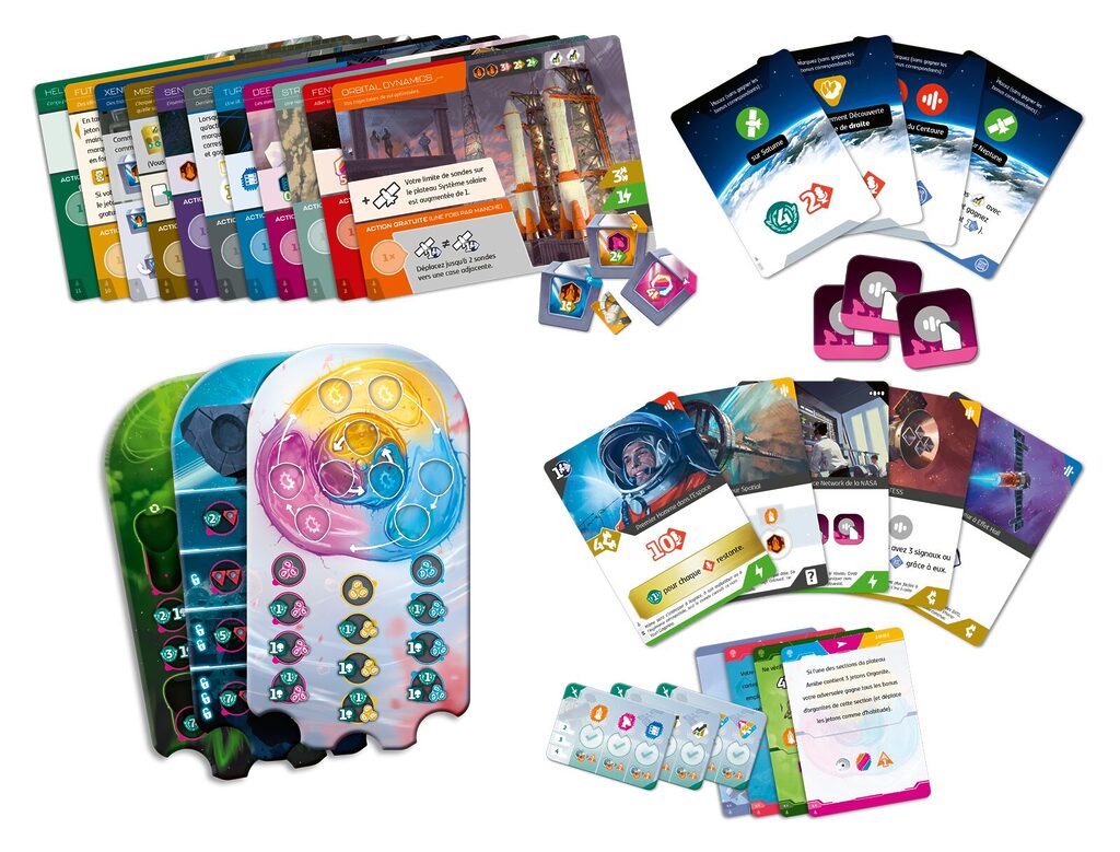 Rencontrez trois nouvelles espèces extraterrestres, chacune avec ses propres particularités, et ajoutez plus de 40 nouvelles cartes projet qui s’intègrent parfaitement au deck principal. Les cartes de Démarrage rapide, conçues pour être utilisées avec les Organisations, vous permettent de passer le premier tour et de vous lancer directement dans l’action. De plus, les nouveaux jetons Signal offrent de nouvelles options pour améliorer vos stratégies de scan.