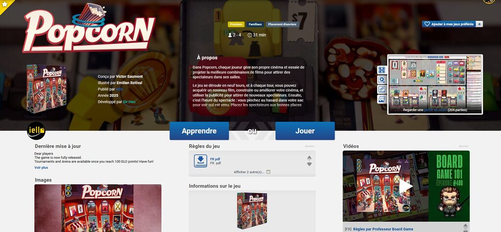 Prêts à gérer vos salles de cinéma ? Popcorn, jeu de Victor Saumont sort aujourd’hui sur vos écrans ! Ce ne sera pas en salles obscures, mais sur votre ordinateur ou smartphone car Popcorn est désormais disponible sur Board Game Arena ! L’occasion rêvée de découvrir un savoureux jeu de bag building et de programmation des films les plus tendance ! Faites mieux que les cinémas voisins et montrez votre capacité à gérer votre cinéma de quartier dans un jeu original au thème accrocheur !