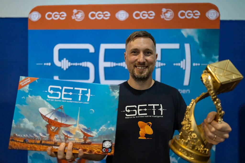 Le grand vainqueur du Deutscher Spiel Preis est SETI, déjà vainqueur du Diamant d’Or et de nombreuses autres récompenses. SETI est un jeu qui invite à utiliser des moyens contemporains et réalistes pour explorer l’espace à la recherche de signes de vie extra-terrestre. Bientôt rejoint par une première extension (Agences Spatiales, qui sortira en France dans quelques semaines), SETI est une valeur sûre du jeu EXPERT dans lequel on se brise les neurones à trouver le meilleur enchainement d’actions pour explorer l’espace. Ecoutez le bruit spatial, envoyez des sondes… et ramenez des preuves de vie !